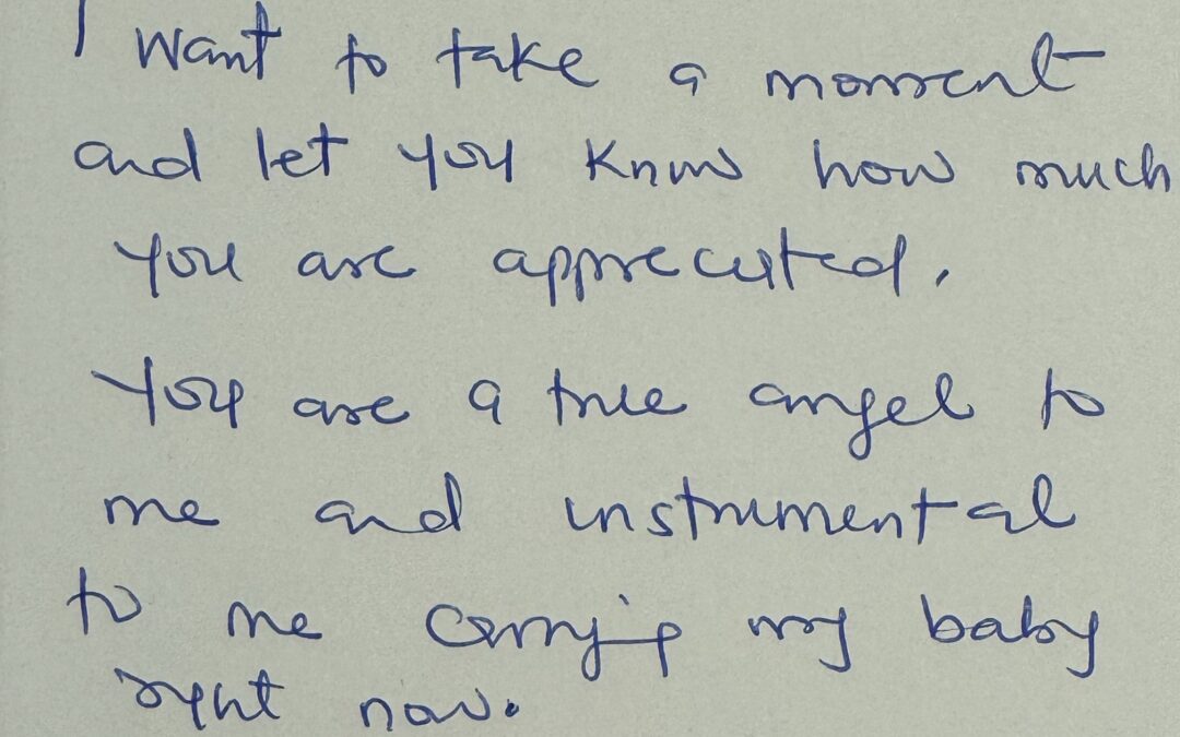 Ana gave birth in March and came back to our center in June to continue her parenting classes! She gave us a thank you note where she wrote, “I want to take a moment and let you know how much you are appreciated. You are a true angel to me and instrumental to me carrying my baby right now. I chose abortion, but you chose life for my baby. Thank you!!!"